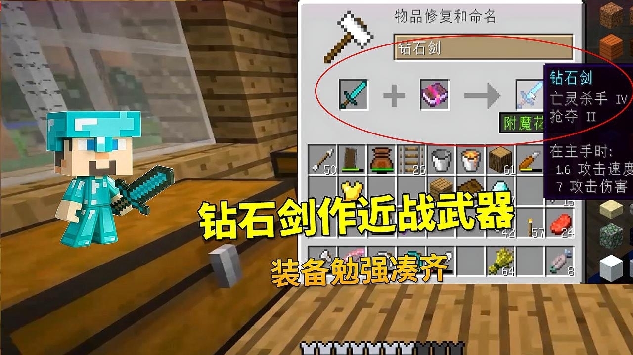 需要两颗钻石加一根木棍,即可合成钻石剑。